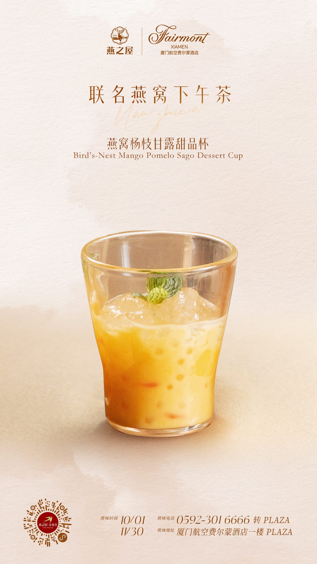 燕之屋與廈門(mén)費爾蒙酒店聯(lián)名燕窩下午茶,將燕窩的溫潤滋養融入精致茶點(diǎn),呈獻一席秋日滋養之作。這場(chǎng)東方雅宴于2025年10月1日至2025年11月30日在廈門(mén)航空費爾蒙酒店1樓PLAZA大堂酒廊限時(shí)臻賞。金秋時(shí)節,把生活調至“飛行模式”,于鷺島之畔的云端雅境中,細品這場(chǎng)融匯東西的味覺(jué)藝術(shù)盛宴,在秋日暖陽(yáng)中感受時(shí)光凝駐的美好時(shí)刻。